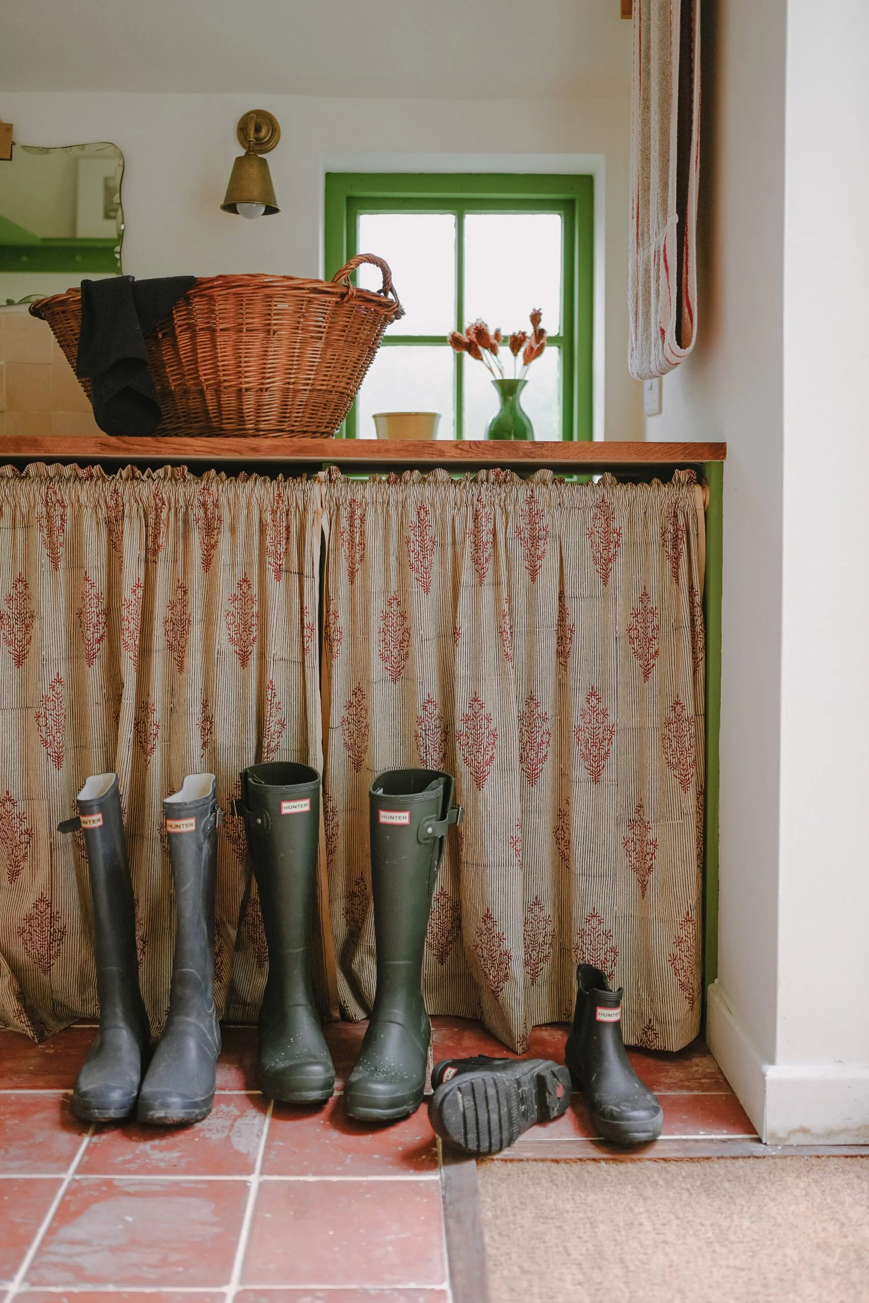 The main house consists of a newly renovated kitchen at the heart of the home, heated by an original 1930’s Aga. There are two living rooms downstairs. The upstairs consists of four bedrooms. The master bedroom has a king size bed. There are two connecting rooms with one queen size and one single (up a ladder). There is also one nursery room with a cot. 1.5 bathrooms.